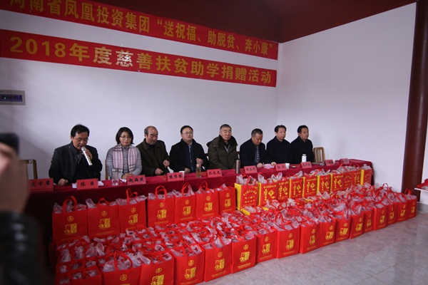 1月28日,正值农历小年,河南省凤凰投资集团“送祝福、助脱贫、奔小康”2018年度慈善扶贫助学捐赠活动在光山县晏河乡许洼村文化活动中心举行。光山县委常委、统战部长张欣,中办挂职副县长孔凡文,信阳市慈善总会副会长、光山县慈善总会名誉会长、河南省凤凰投资集团董事长赵丰禄,光山县慈善总会会长向正升,信阳市慈善总会办公室主任熊传国,晏河乡党政主要领导毕雪丽,张鸿鹏,陈臣等出席活动。