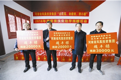 活动现场,河南省凤凰投资集团分别向光山县晏河乡政府、许洼村、河棚社区、晏河乡二小等单位及46名五保老人、困难群众、在校大学生、大病救助人员捐赠资金30万元,其中,扶贫救助资金、种树资金、教育发展资金15万元。