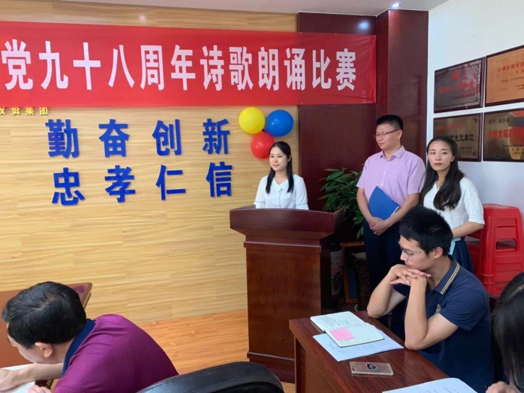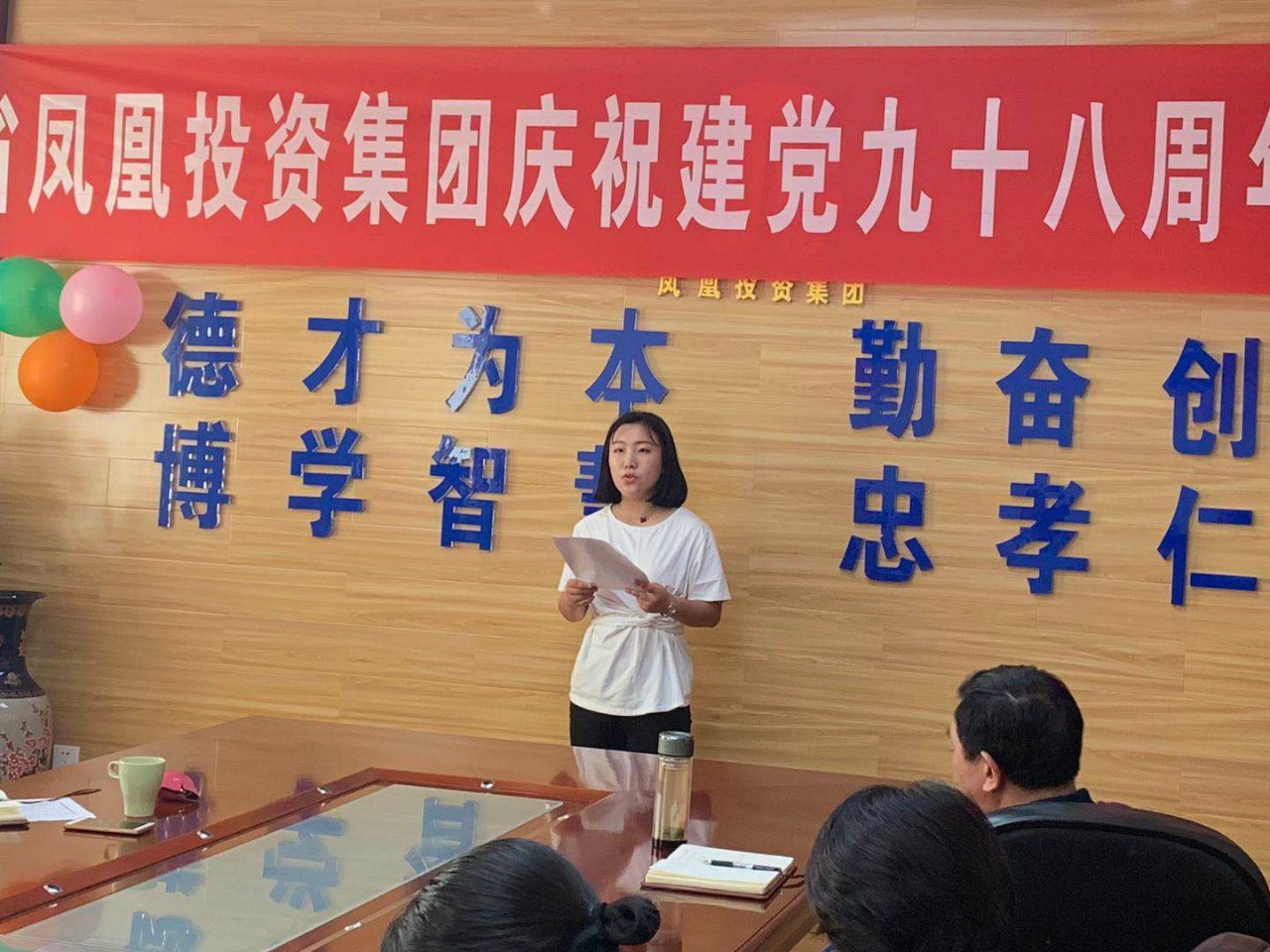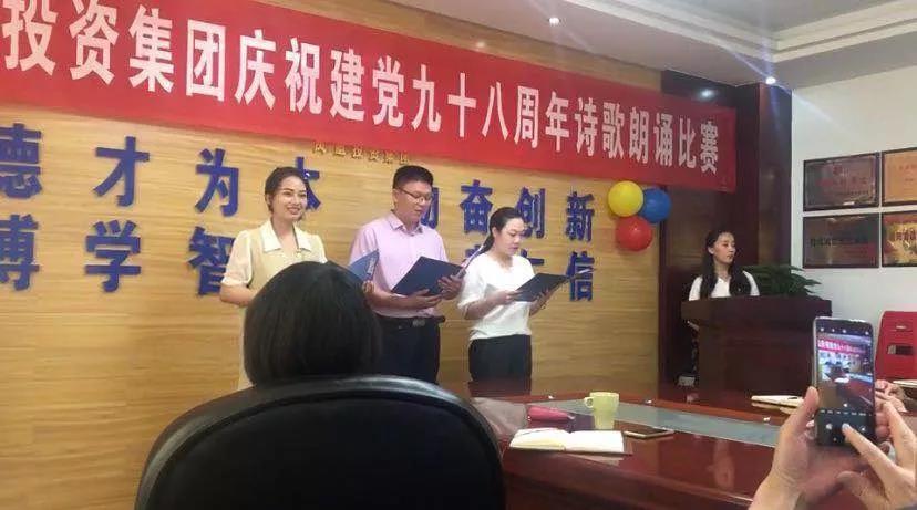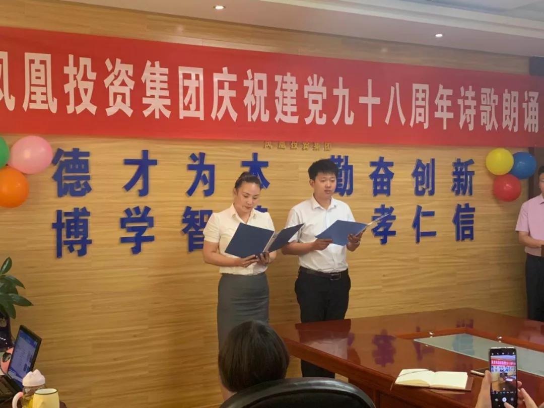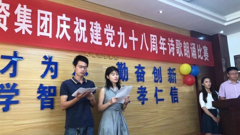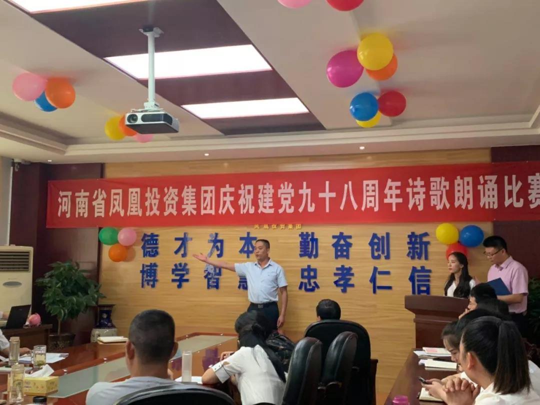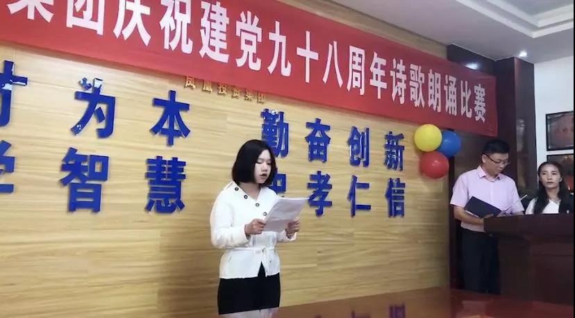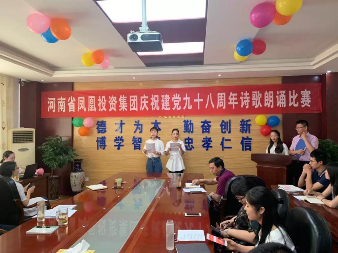 为了隆重纪念中国共产党建党98周年,重温党的光辉历程,歌颂党的伟大成就,进一步提高集团公司员工的凝聚力和战斗力,激发广大员工爱岗敬业的热情。6月29日,河南省凤凰投资集团举办了“勇当时代先锋、绽放青春力量”为主题的诗歌朗诵比赛。