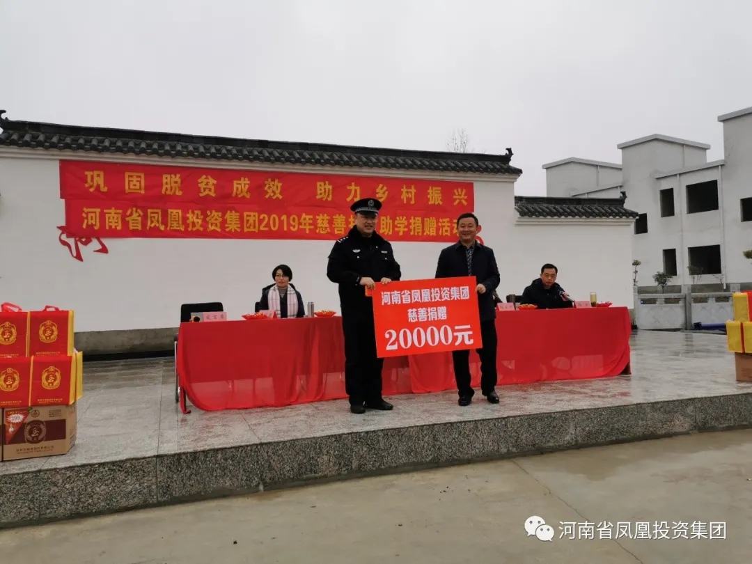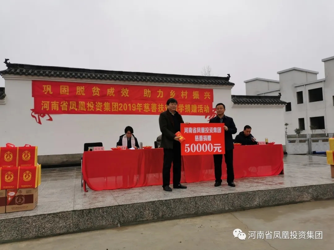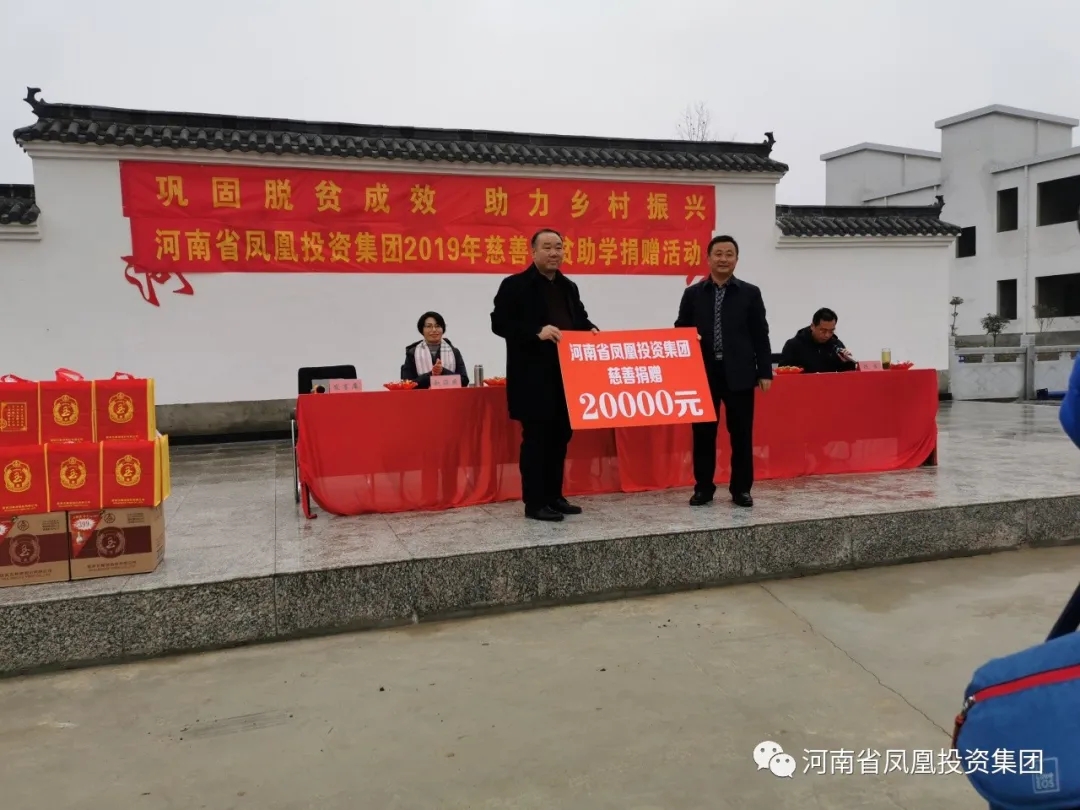 2020年1月17日,正值农历小年,河南省凤凰投资集团“巩固脱贫成效 助力乡村振兴”2019年度慈善扶贫助学爱心捐赠活动在光山县河棚社区文化广场如期举行。光山县委常委、统战部长张欣,市慈善总会副会长、光山慈善总会名誉会长、河南省凤凰投资集团董事长赵丰禄,光山县慈善总会会长向正升,晏河乡党政主要领导毕雪丽、陈臣等出席活动。
