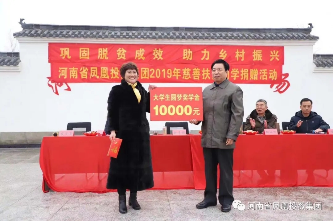 此次慈善捐赠活动,河南省凤凰投资集团共捐赠资金30多万元,其中,向光山县晏河乡政府、许洼村、河棚社区、晏河乡二小等单位和46名五保老人、困难群众和大病救助人员捐赠扶贫救助资金、乡村建设、教育发展资金12万元;向21位大学生颁发“大学生圆梦奖金”6万元;向146名农户发放了近15万元的慰问品。
