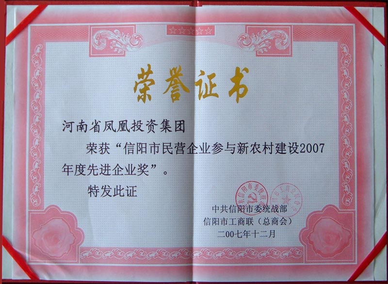 2007.03 2006年度信阳市房地产开发优秀企业 |